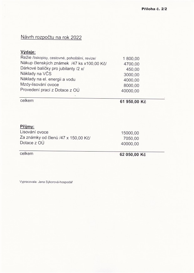 Úvod > Občan > Spolky > Zahrádkáři Krmelín > Aktuality > Návrh rozpočtu na rok 2022