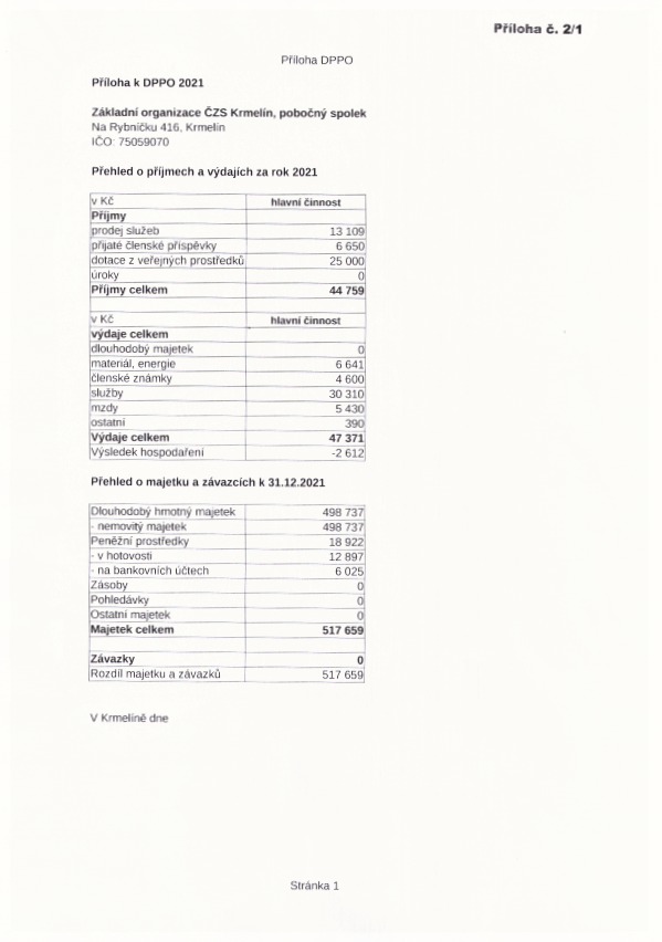 Úvod > Občan > Spolky > Zahrádkáři Krmelín > Aktuality > Zpráva o hospodaření za rok 2021